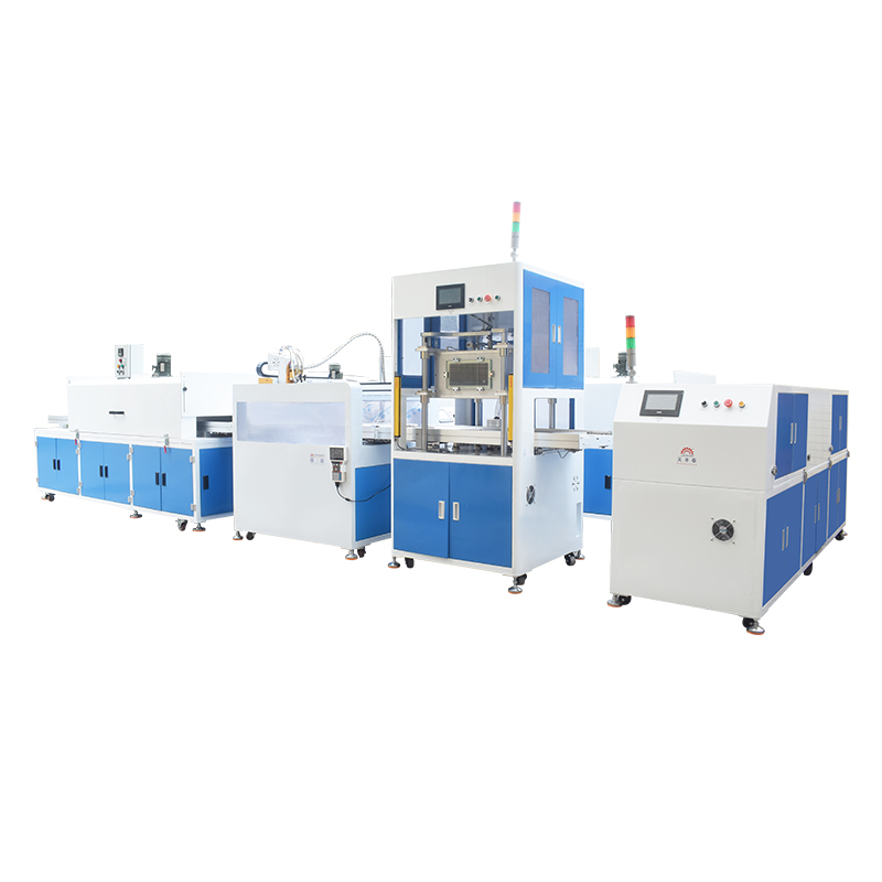 TFT-661D在线式真空灌胶机由2米烘烤线+TFT-661D全自动落地式双龙门灌胶机+TFT-661D在线式真空机+TFT-换向线+TFT-接驳台组成,该设备实现了全自动化灌胶,为企业节省了人工和成本。